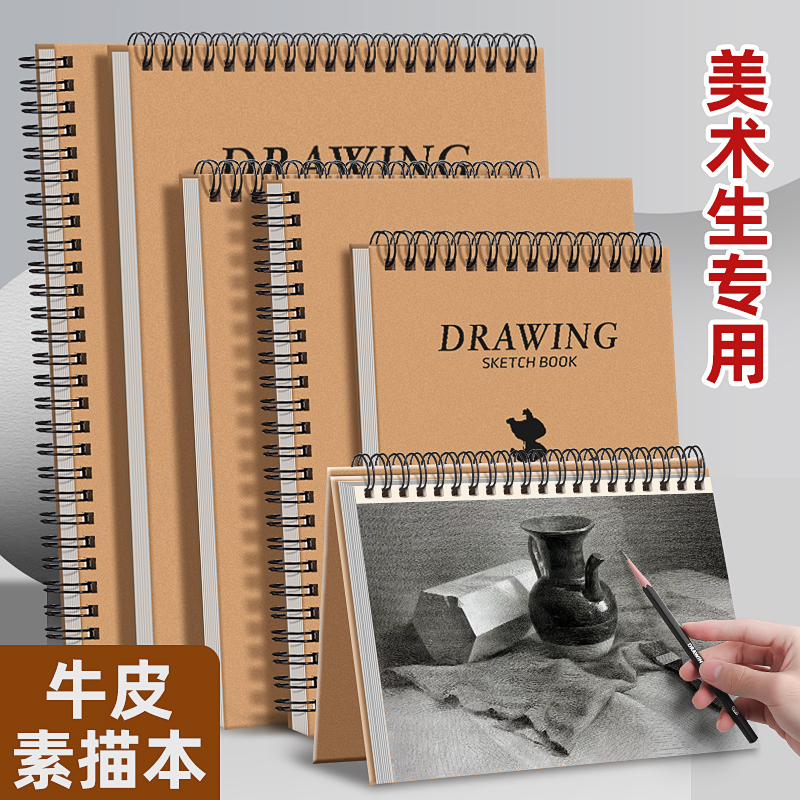 A4素描本加厚速写画画本16K绘画本8K素描本小学生专用空白本子幼儿园A4手绘写生水彩马克笔A3美术生硬壳线圈
