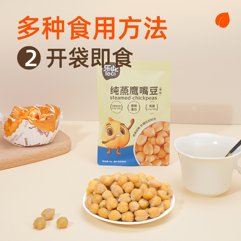 乐此软鹰嘴豆即食纯蒸原味煮低脂饱腹代餐非油炸非50g/包健康袋装
