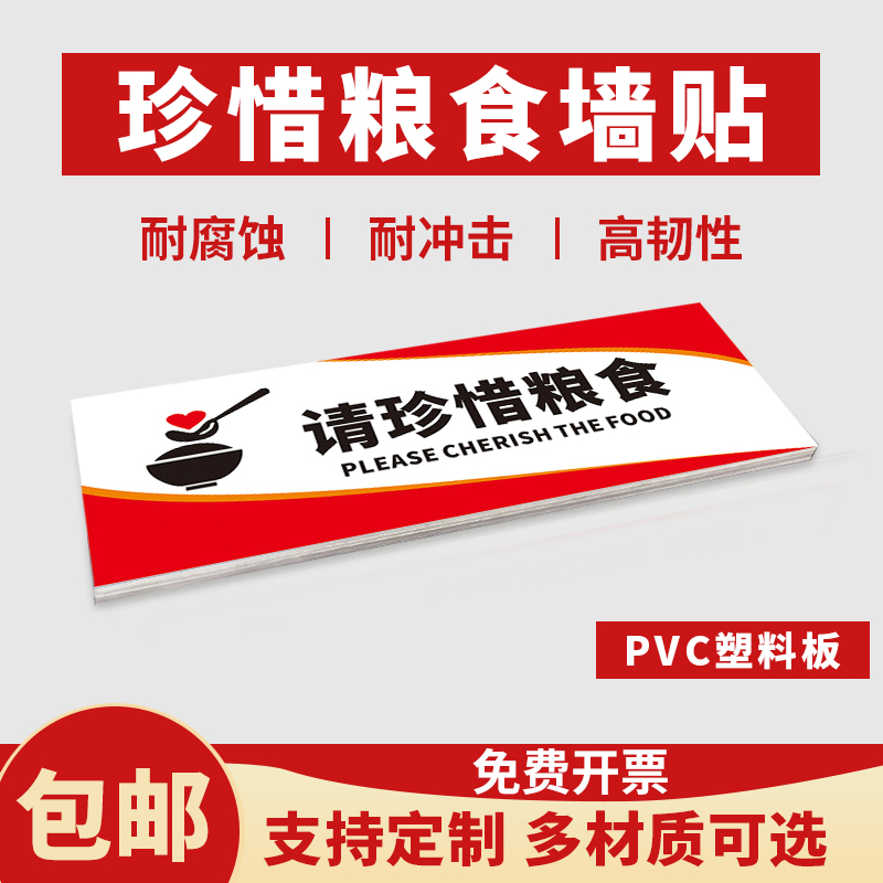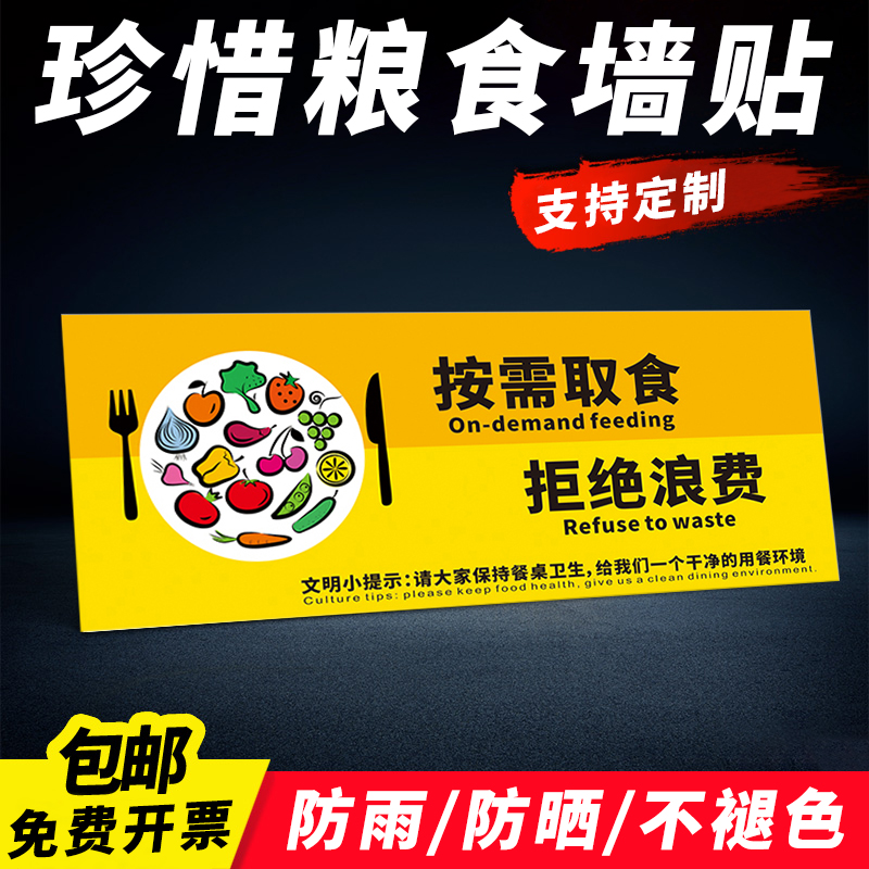 珍惜粮食墙贴 食堂餐厅文明礼仪请按需取食拒绝浪费节约用水珍惜粮食是一种美德标志标识牌温馨提示标语贴纸