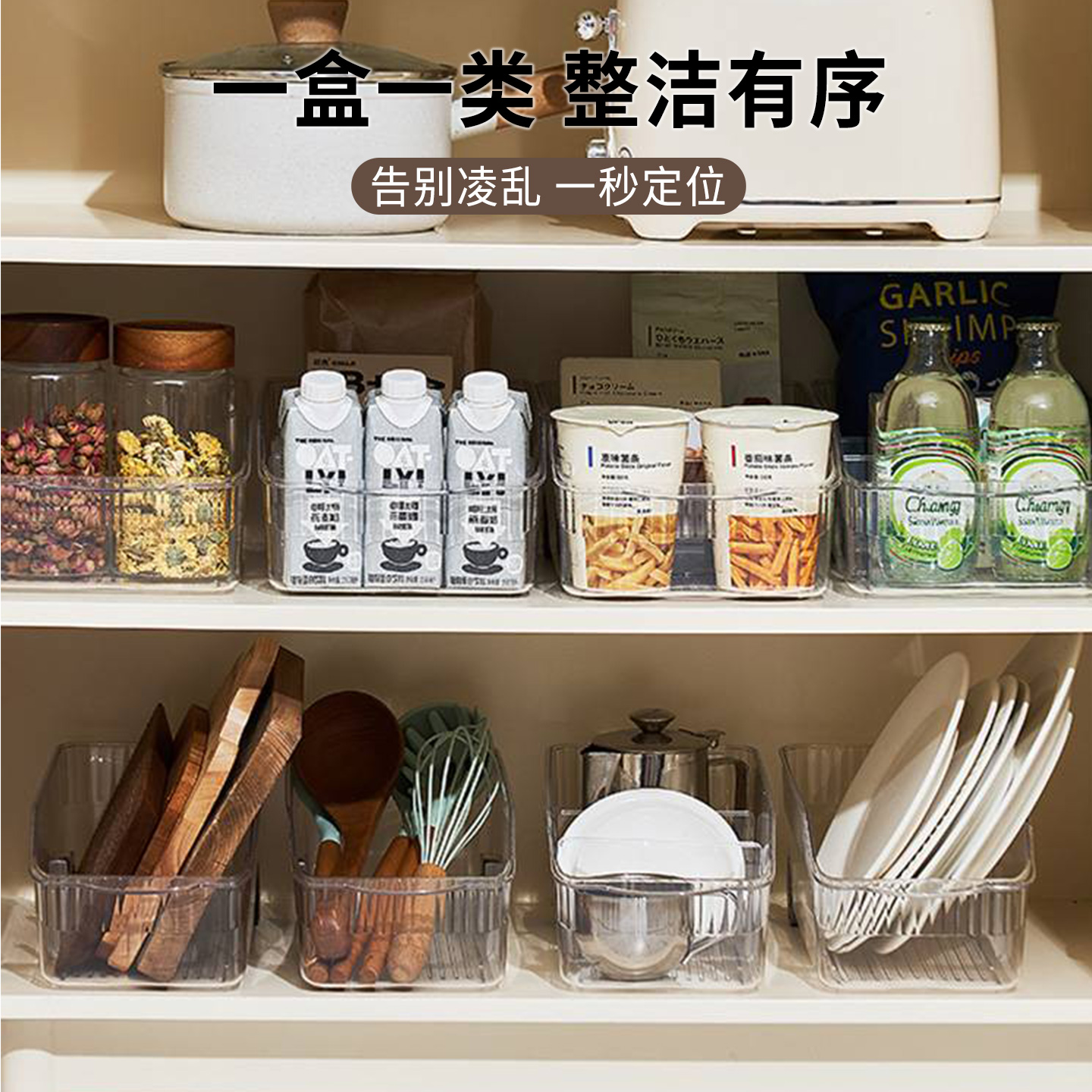 橱柜收纳盒整理杂物零食透明置物筐桌面透明亚克力长方形储物盒子
