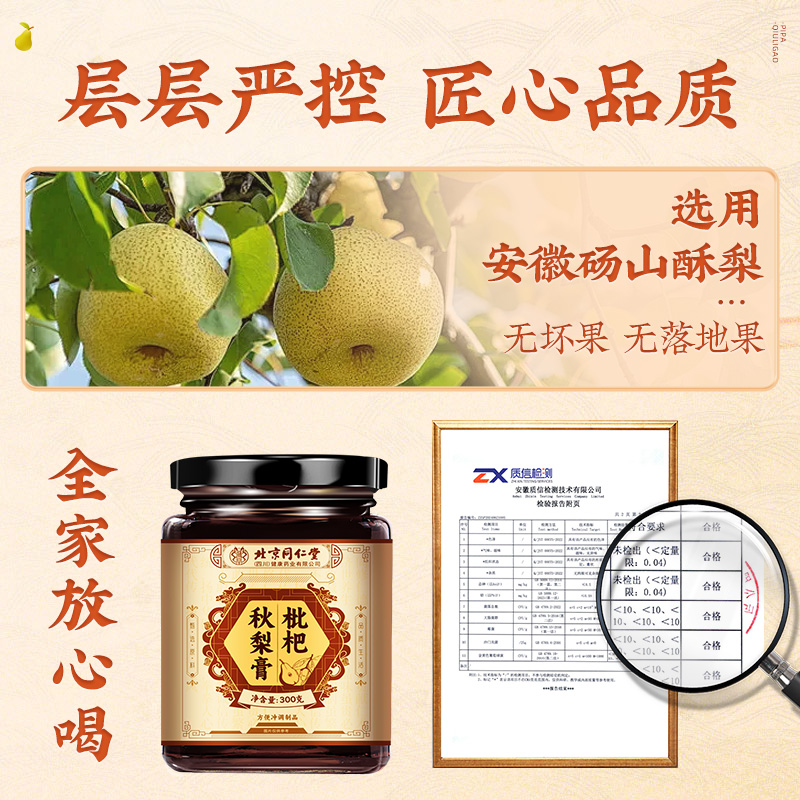 北京同仁堂枇杷秋梨膏润喉肺护嗓雪梨止枇杷膏咳儿童老人泡水熬制