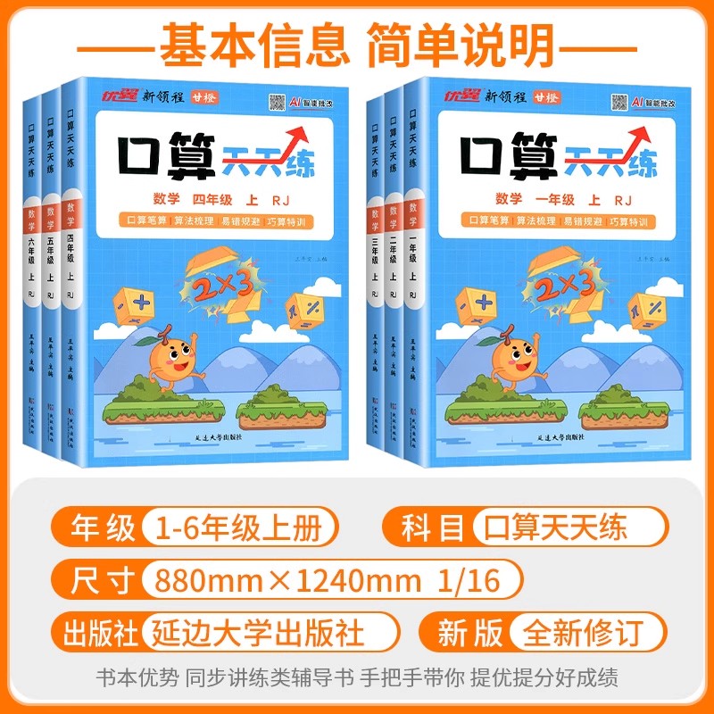 2025新版优翼甘橙口算天天练一二三四五六年级上册下册人教版北师版数学思维新领程专项训练脱式竖式计算练习题同步练习册每日一练