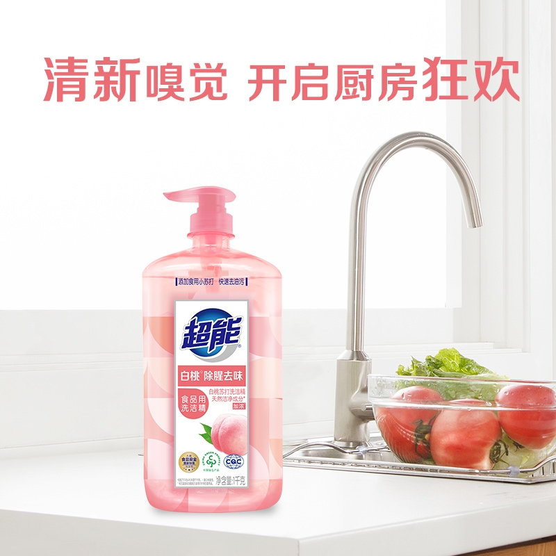 超能洗洁精白桃去腥家用实惠装按压瓶厨房祛味去油洗碗液官方正品
