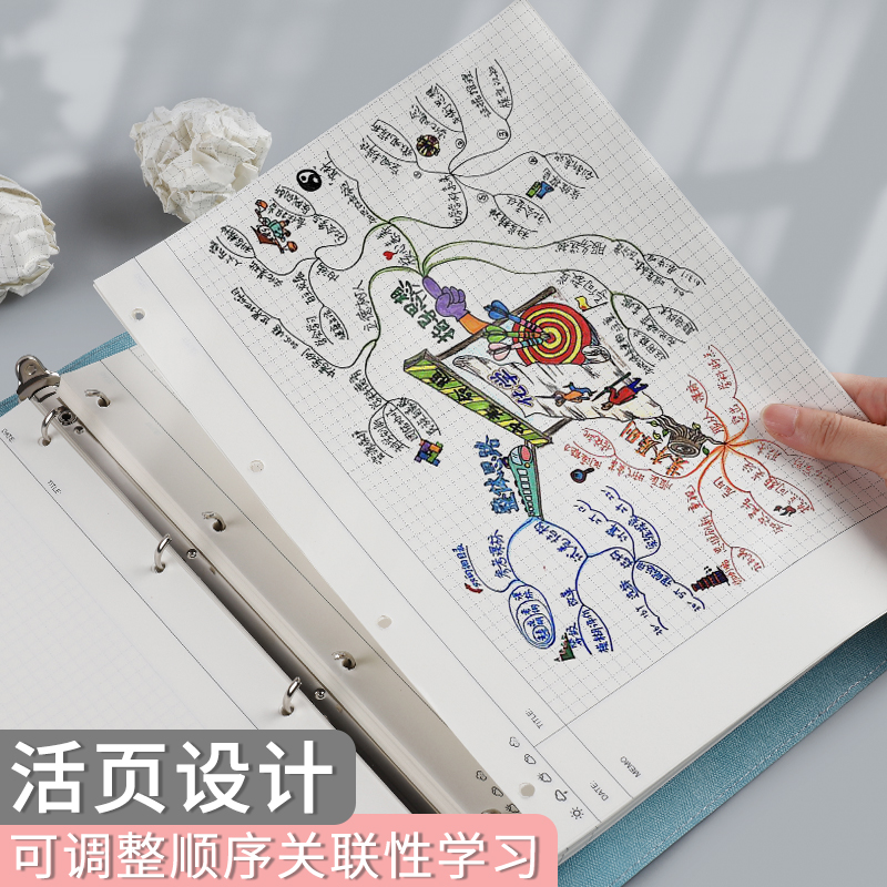 a4大号软皮思维导图笔记本子大学生考研阅读笔记康奈尔本子网格纸绘图本小学生强迫症格子方格活页本可拆卸