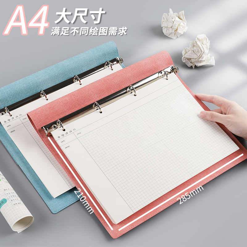 晨光活页本B5横线笔记本子A4方格网格记录本A5多规格可拆卸替芯软壳考研线圈错题本加厚纸张不咯手活页夹高中
