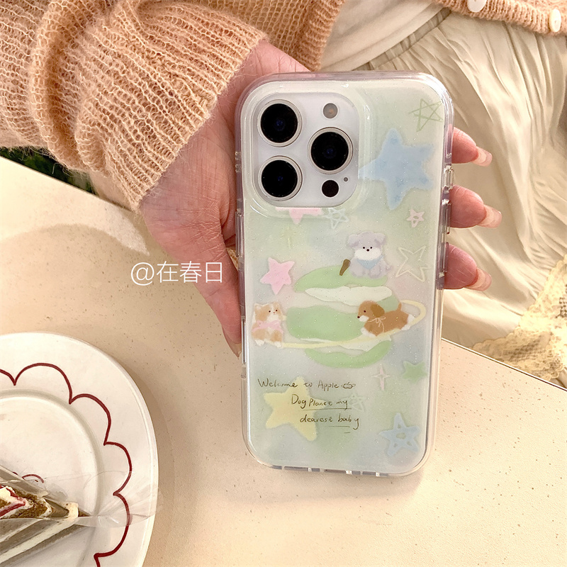 在春日韩系星星苹果小狗双层手机壳适用于苹果15promax/14新款iPhone15pro女15保护壳16promax/16