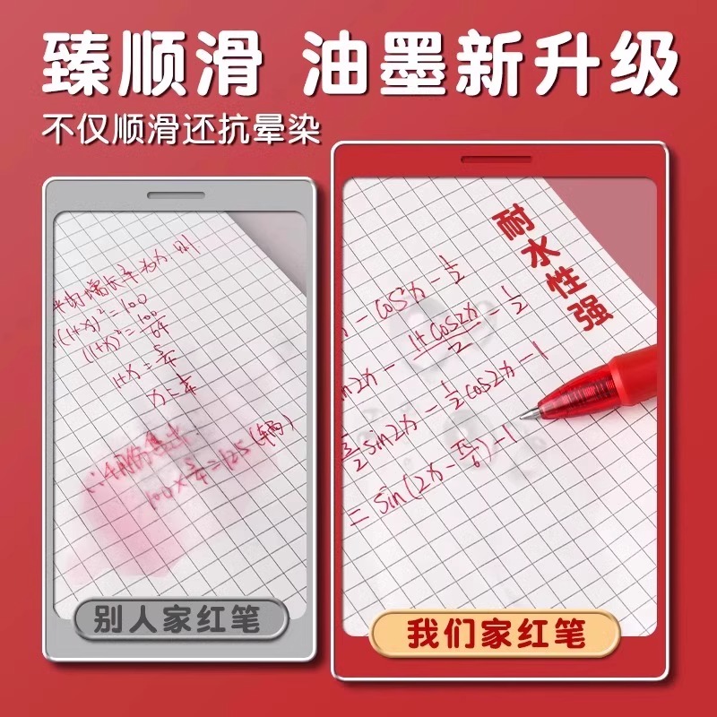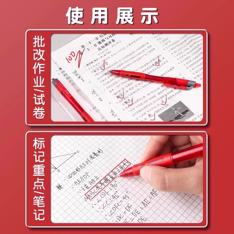 三年二班×点石红笔速干学生用红色中性笔老师专用粗头批改作业高颜值柔绘笔直液式刷题笔圆珠笔勃艮第红水笔