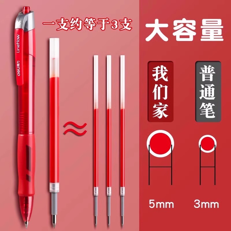得力红笔老师专用S08红色中性笔教师批改作业试卷标记圆珠笔水笔按动式签字笔速干臻顺滑子弹头0.5mm学习用品
