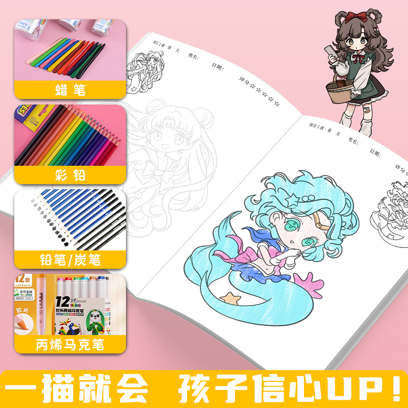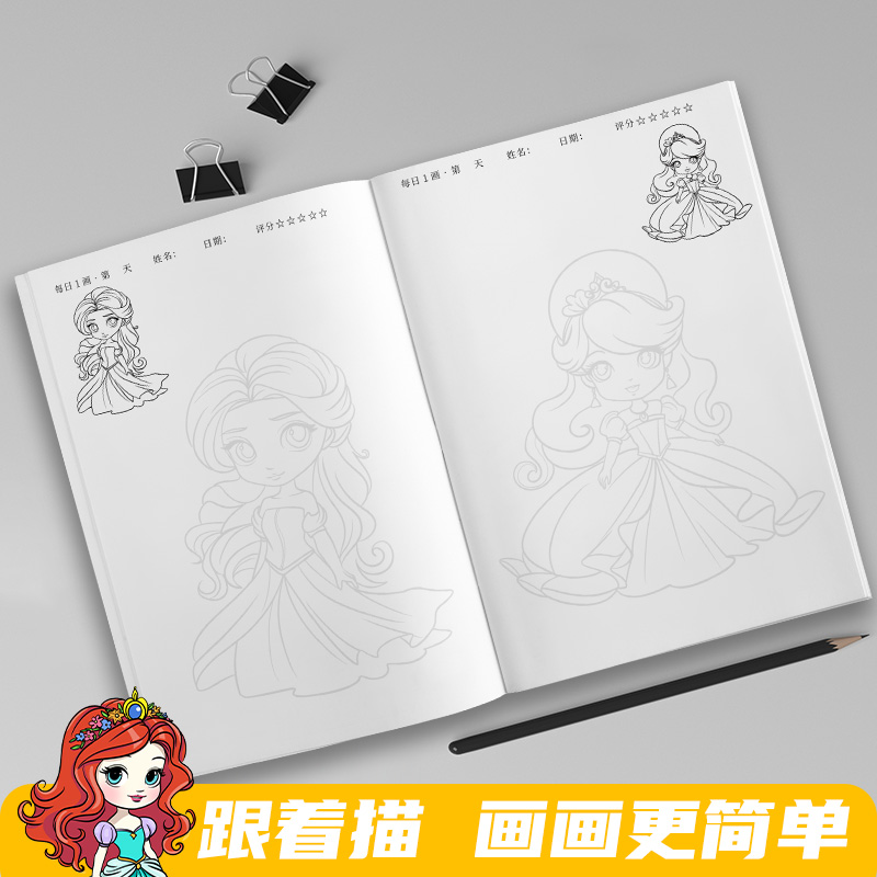 漫画入门手绘公主描摹本动漫线稿人物描绘儿童画画本人鱼卡通叶罗丽q版女孩小学生专用绘画素描临摹联系画册