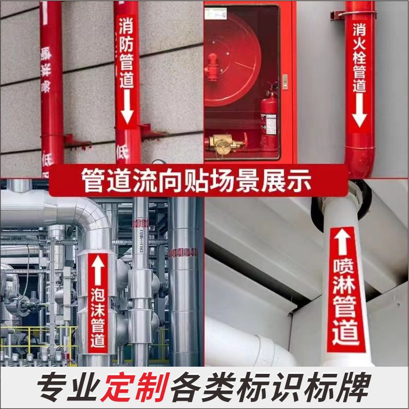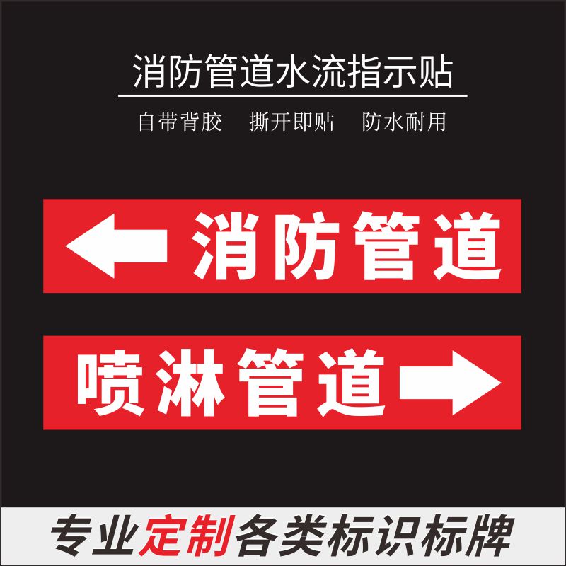 箭头标识消防喷淋指示水流方向指示贴纸灭火器管道常开常闭标识牌