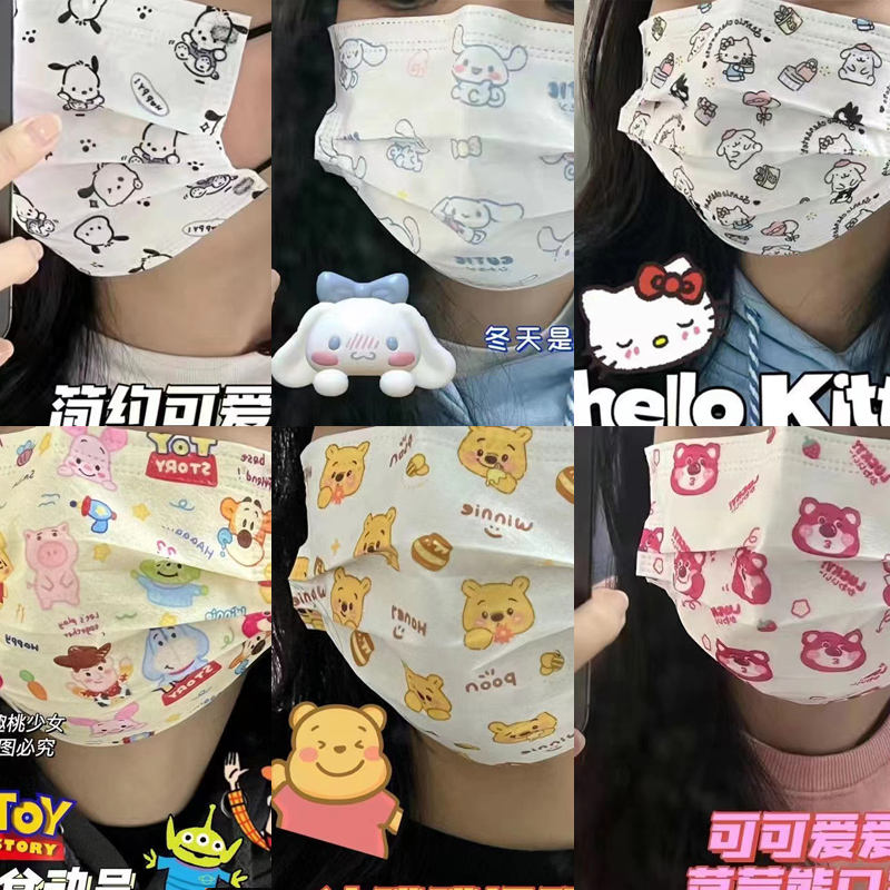 可爱卡通印花一次性独立包装口罩含熔喷布防尘高颜值全脸粉尘冬日