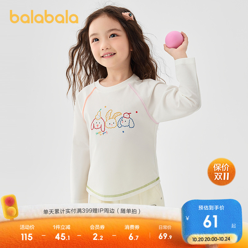 巴拉巴拉童装女童长袖T恤2025年春秋季新款打底上衣甜美宝宝上衣