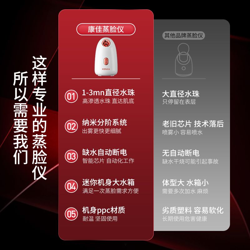 康佳蒸脸仪家用热喷补水蒸脸器打开毛孔排毒纳米喷雾脸部清洁保湿