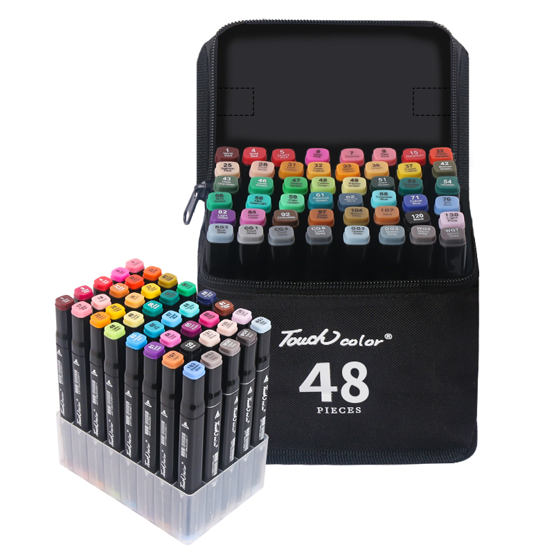 touch color正品马克笔套装48色学生用动漫设计手绘酒精油性双头肤色初学者绘画水彩画笔带底座 全套1000色