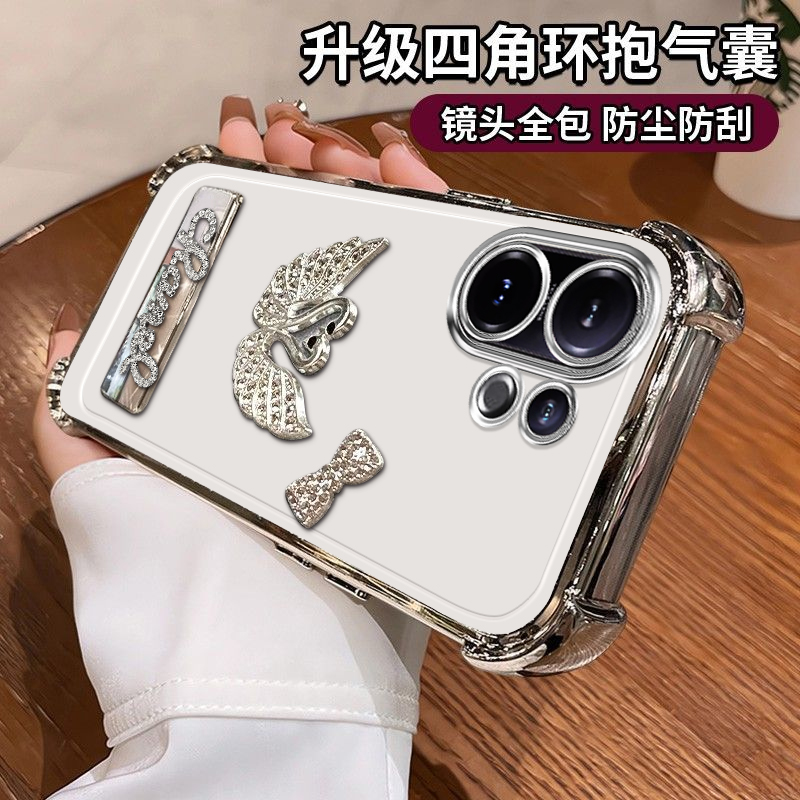 适用VIVOS30手机壳闪钻天鹅电镀四角防摔VIVO简约硅胶气囊全包vivoS30PROMINI闪钻字母电镀支架新款保护套