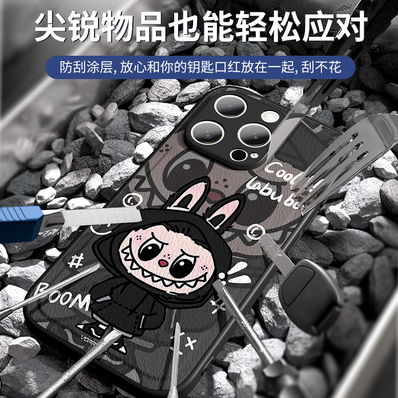 适用苹果16promax手机壳新款iPhone17全包13pro高级感15plus硅胶防摔14por男女款12pm小羊皮11秋冬黑色拉布布