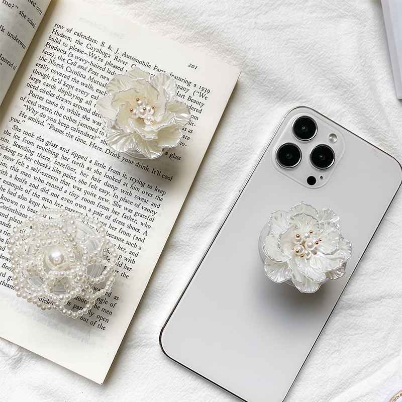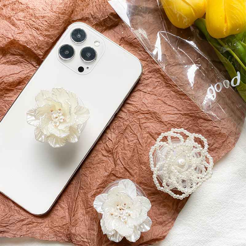 纯欲玫瑰花手机气囊支架韩国ins风优雅简约立体珍珠花桌面支撑架