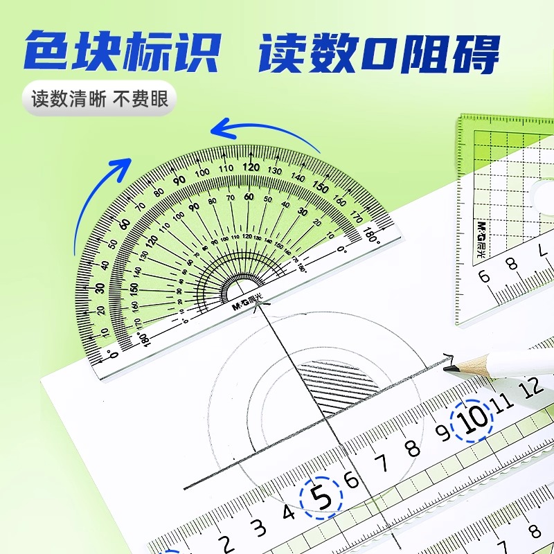 晨光防蓝光弱反射护眼15cm直尺波浪尺大数字更清晰侧边网格参考线设计5MM侧边辅助深度测量学生高透护眼直尺