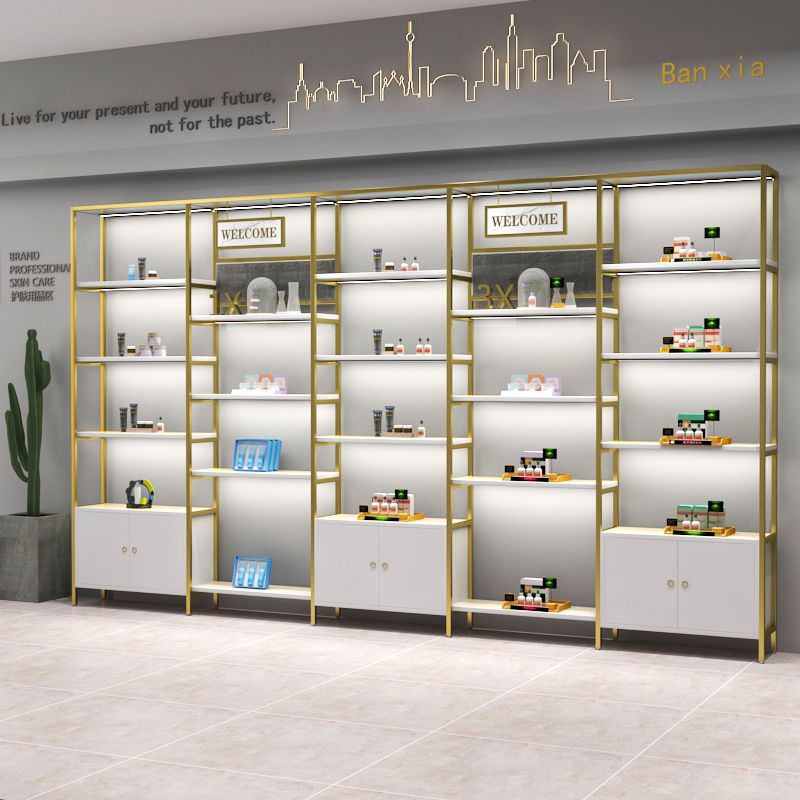 2025产品展轻化展美甲示架护肤陈货带灯美示柜奢妆品柜展品列架