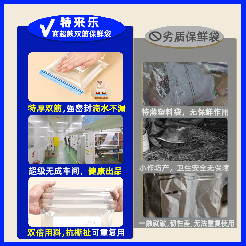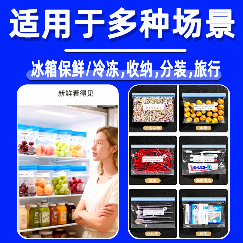 保鲜袋食品密封袋家用冰箱专用冷冻自封袋带封口塑封加厚收纳袋