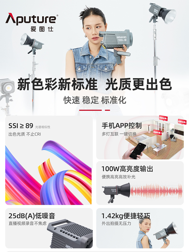 Aputure/爱图仕 艾蒙拉 Amaran 100d 100x 200d 200x S 直播视频led补光灯双色温摄影摄像美颜拍照影棚常亮灯