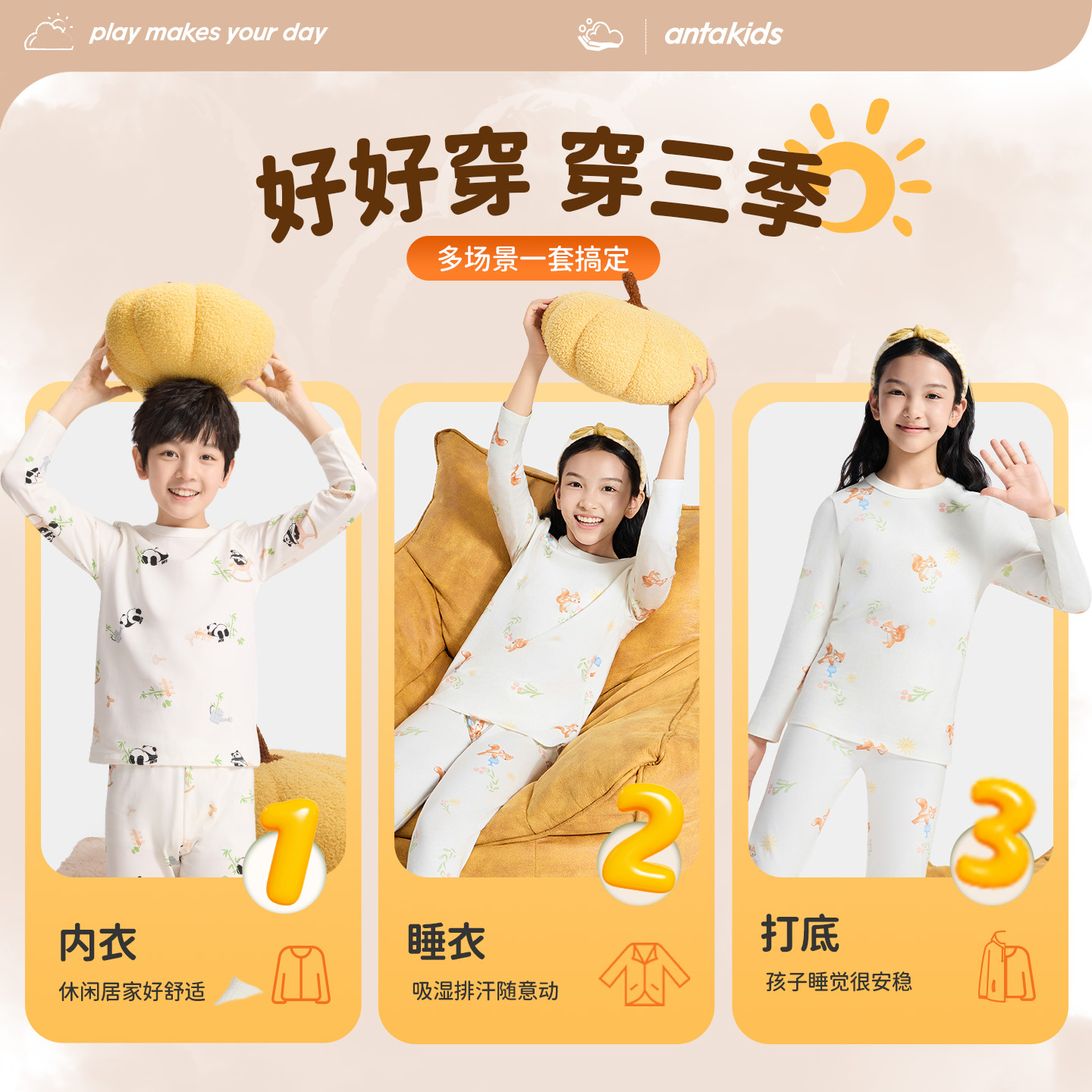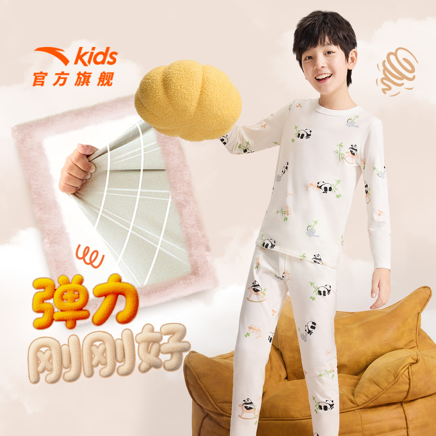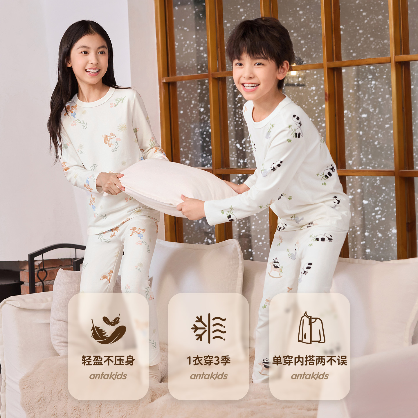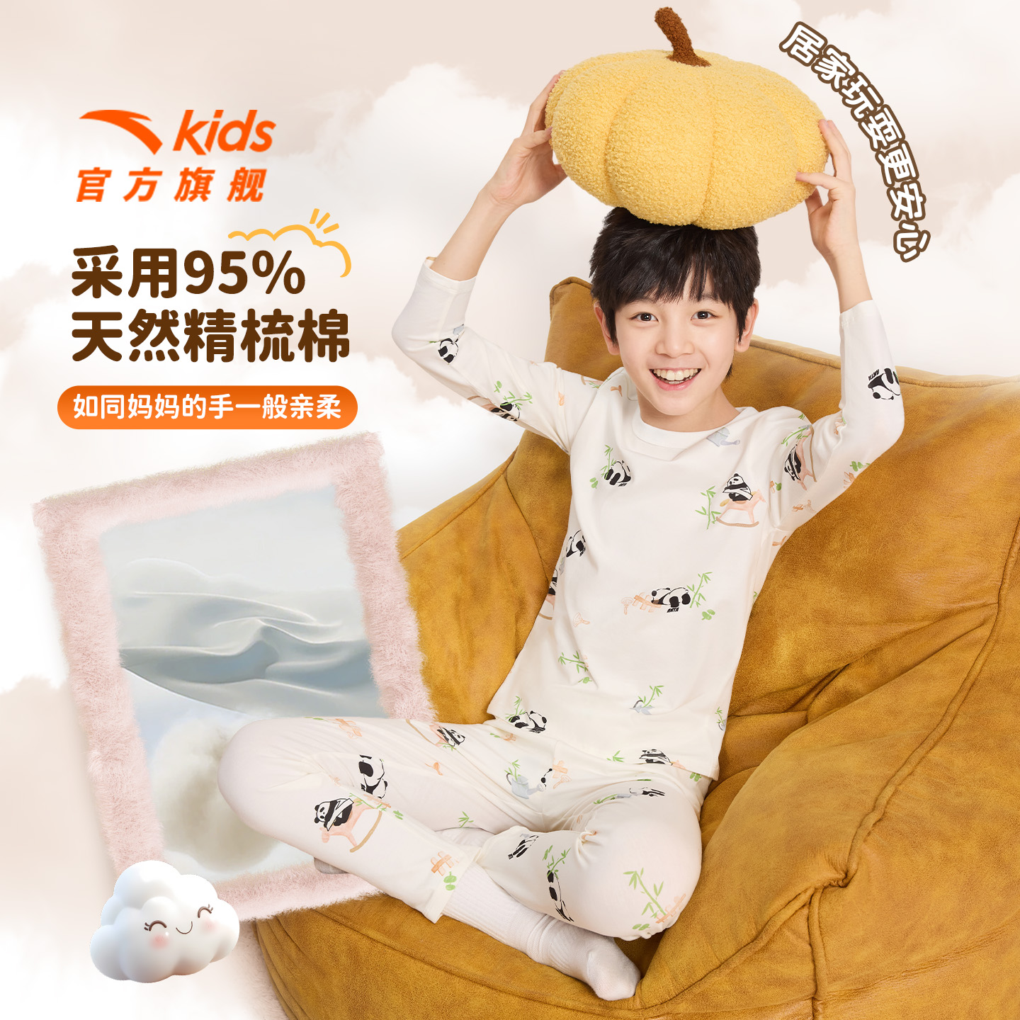 安踏儿童家居服套装女童秋装2025新亲肤男童睡衣长袖长裤秋衣秋裤