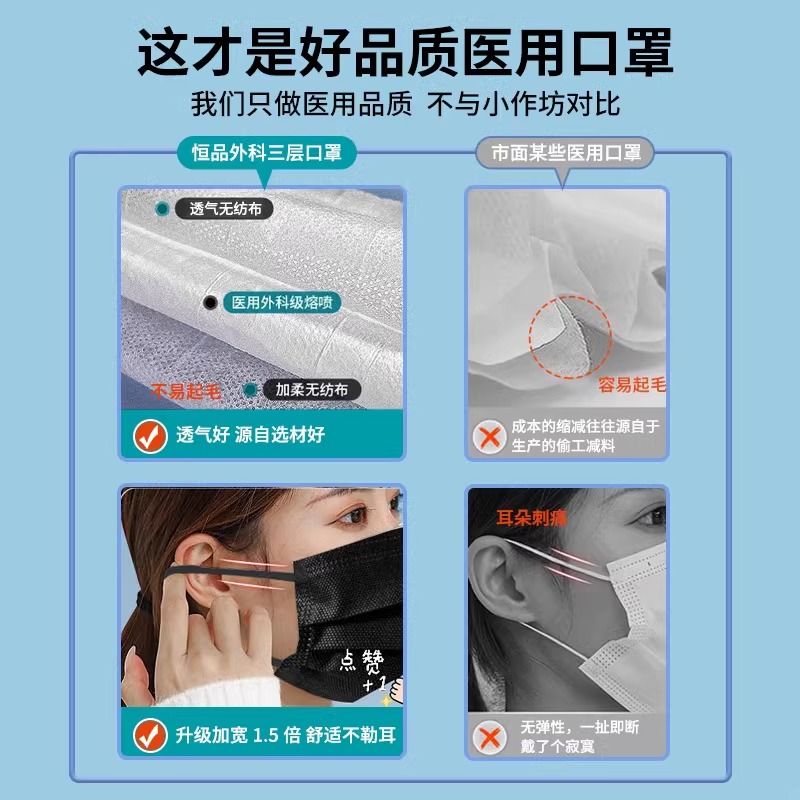黑色口罩一次性医疗女高颜值医用外科正品官方旗舰店2025新款潮款
