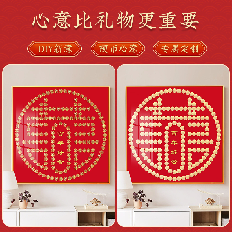 五角钱摆喜字硬币相框百喜图diy手工五毛新婚礼物送新人结婚闺蜜
