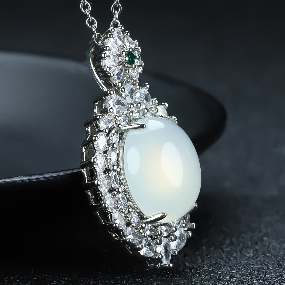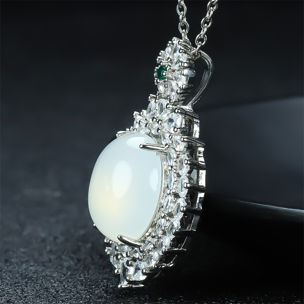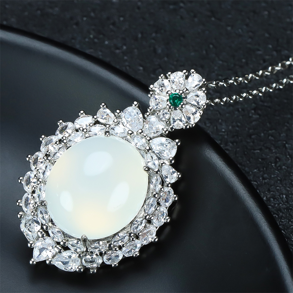 送证书冰种玉髓吊坠女款翡翠色镶嵌宝石光白月光水沫挂件玛瑙项链