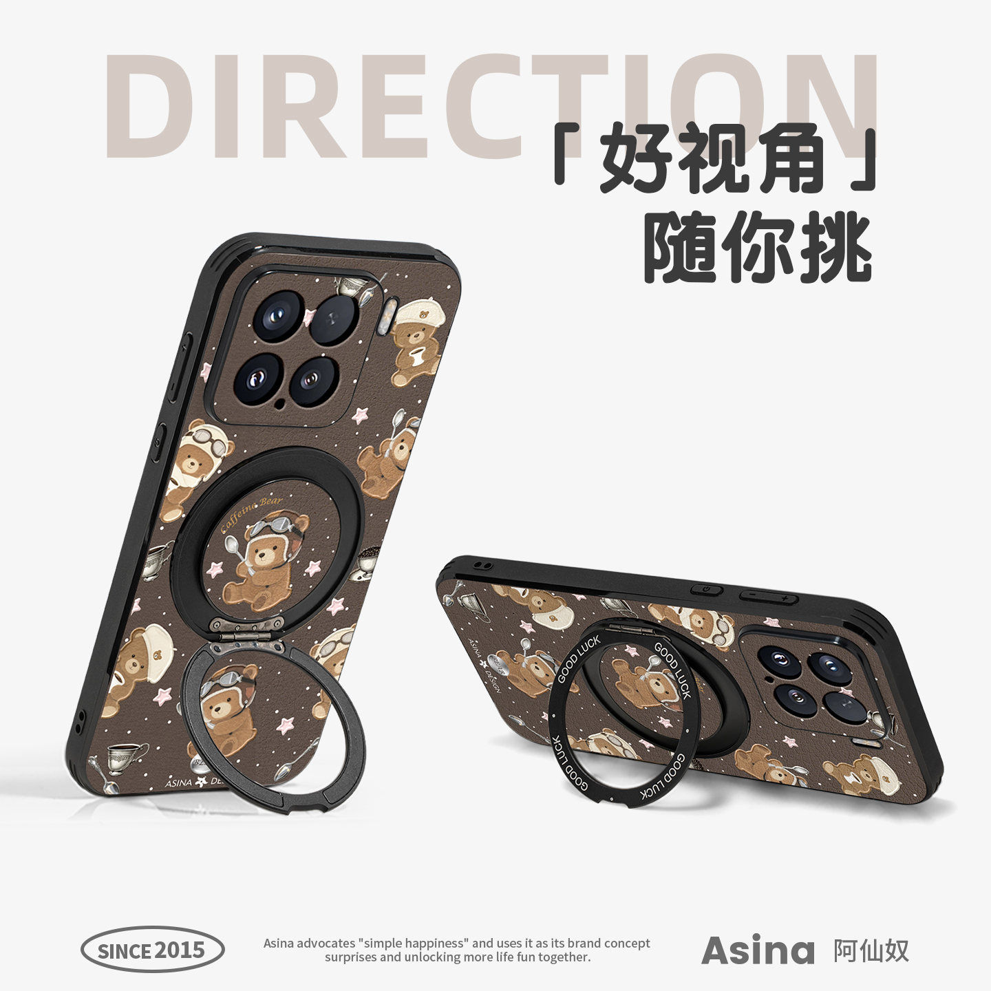 咖啡熊仔适用小米15手机壳卡通磁吸14Pro防摔素皮15Ultra旋转磁吸支架14高级复古保护套15Pro秋冬新款外壳Ho3
