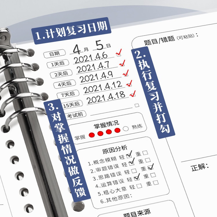 错题本三合一活页初中生专用高中生小学生数学纠错本考研大学生英语整理本集改错本a4b5笔记本子可拆卸纸加厚