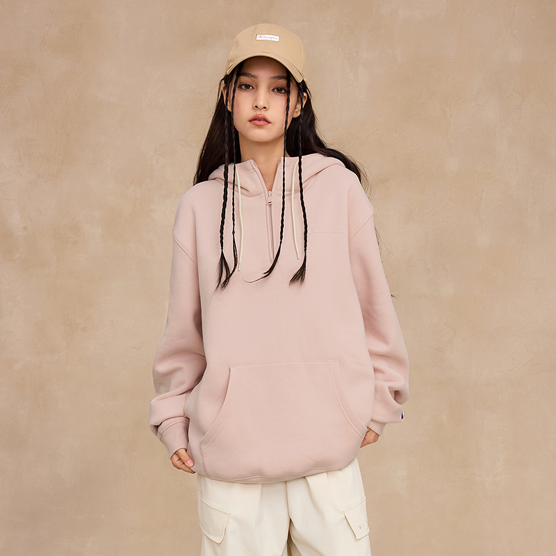 Champion冠军连帽加绒卫衣男2025冬季新款保暖半拉链印花上衣女秋