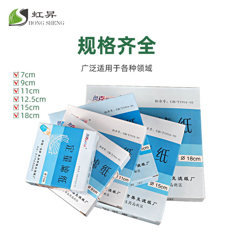 奥克定性/定量滤纸实验室用快速中速慢7 9 11 12.5 15 18cm过滤纸大张60*60定量吸水纸机油检测漏斗化学试纸
