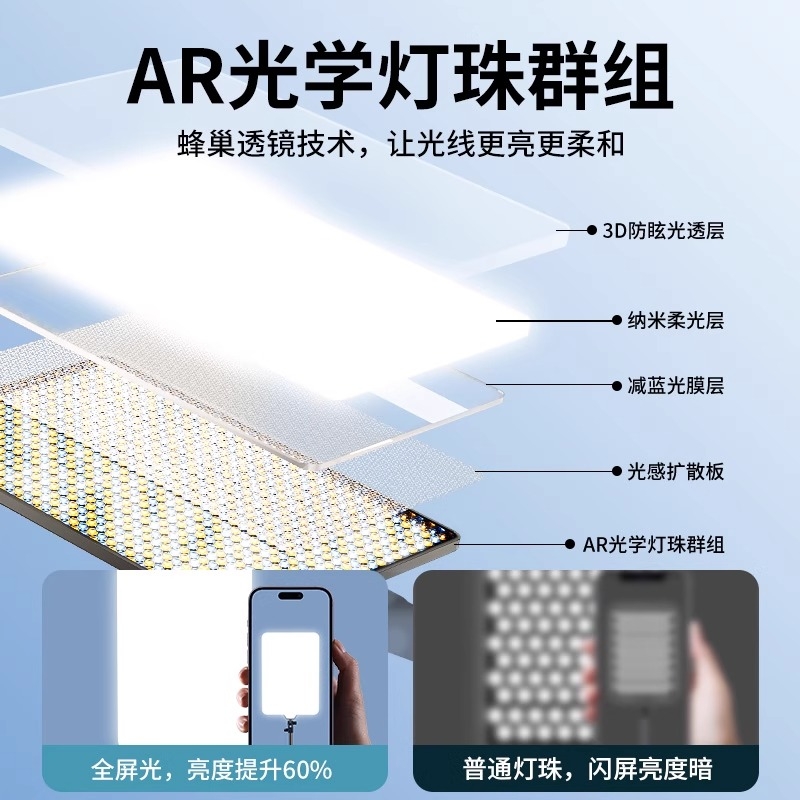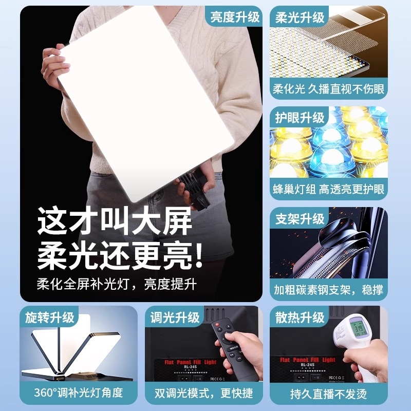专业直播补光灯主播专用间灯光摄影拍照室内led柔光美颜拍视频美食珠宝拍摄照相平板下巴面光桌面方形打光灯