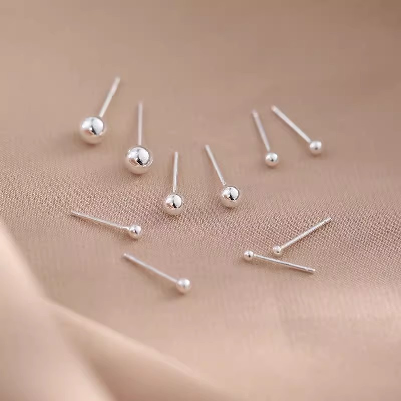 925镀银耳钉耳骨钉 养耳洞足银耳骨钉迷你圆珠银豆豆男女学生耳环
