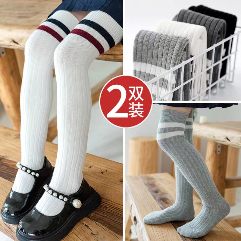 儿童袜子男童女童长筒袜过膝袜春秋薄款白色搭配校服外穿洋气高筒