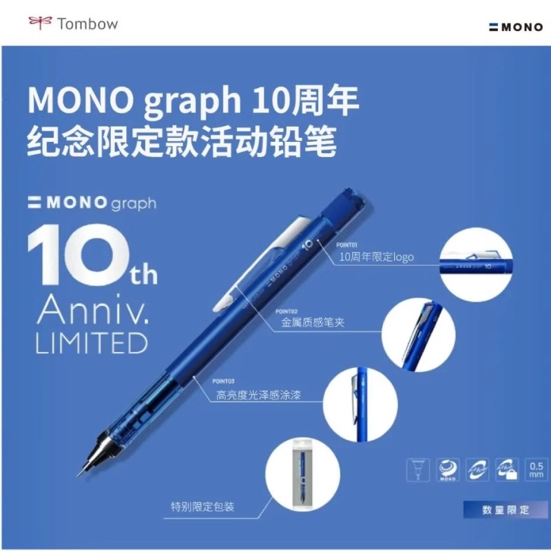 日本Tombow蜻蜓10周年哑光色系限定摇摇出铅学生低重心自动铅笔