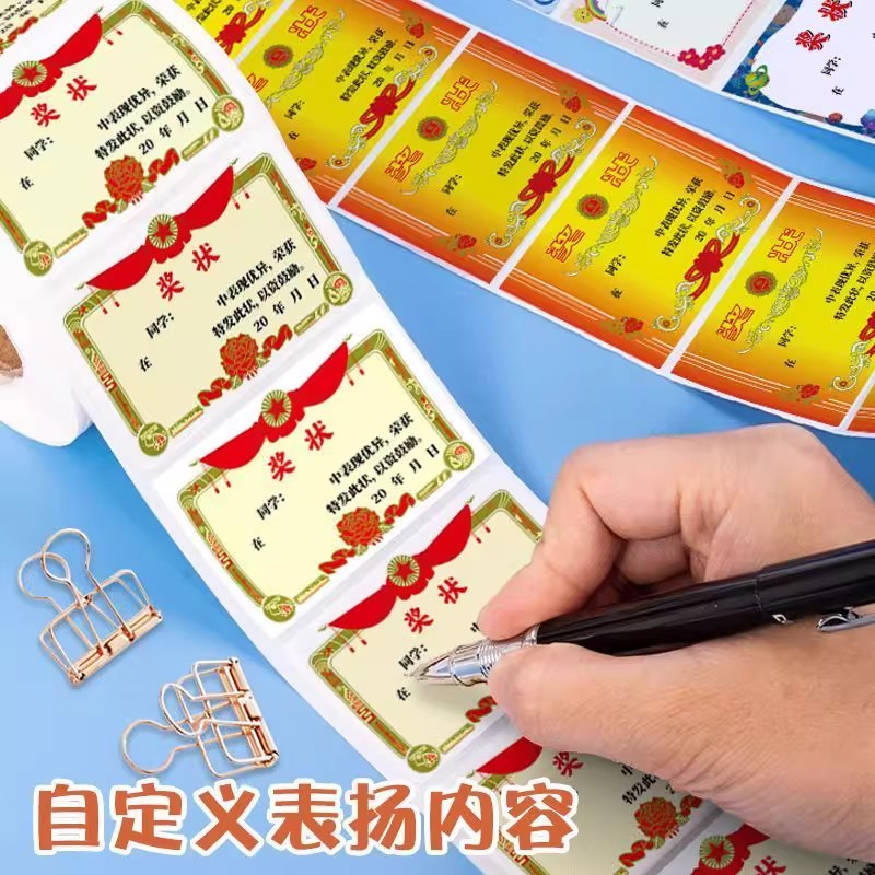 多彩小学生奖励迷你小奖状贴纸无痕儿童表扬贴鼓励孩子学习奖状贴