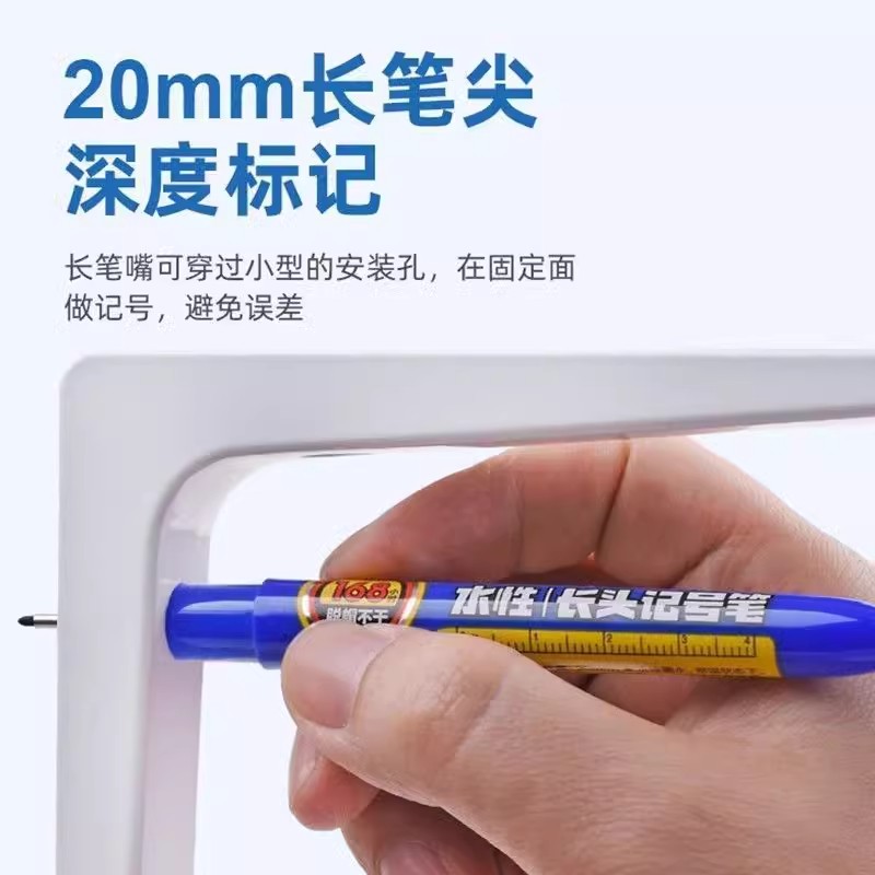 晨光长头记号笔油性木工专用划线笔工地瓷砖画线笔长嘴黑色笔深孔划线加长打孔防水防油速干顺滑深孔计号脱帽