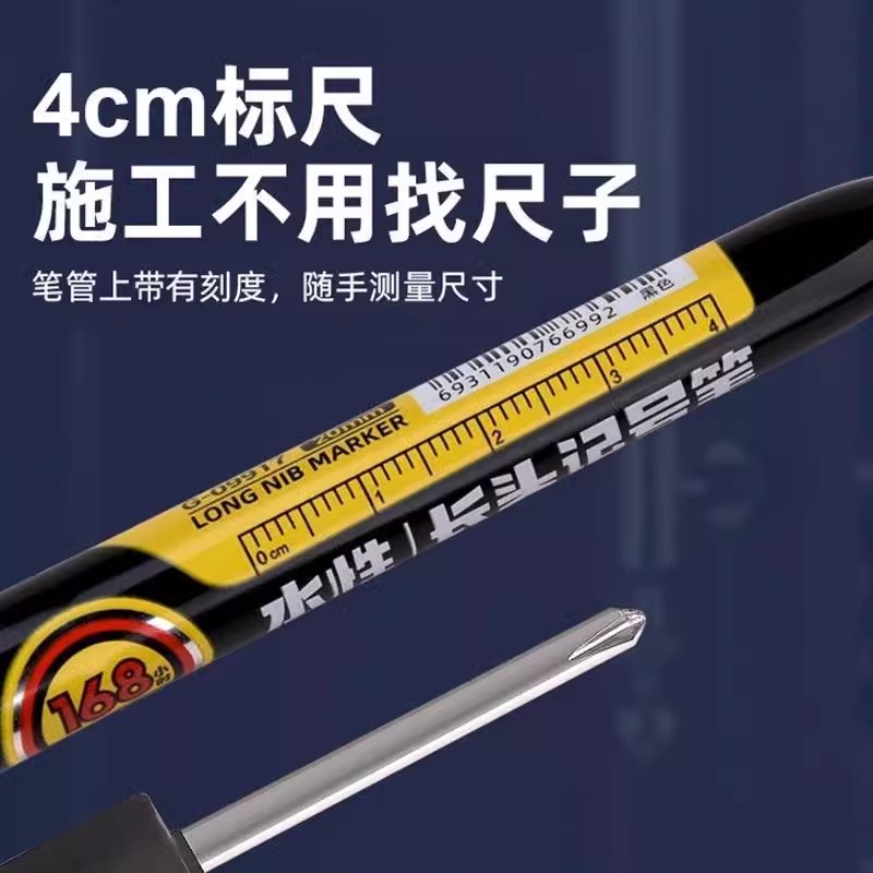 长头记号笔工地专用水性笔小支细头木工装修瓷砖玻璃标记笔防水笔