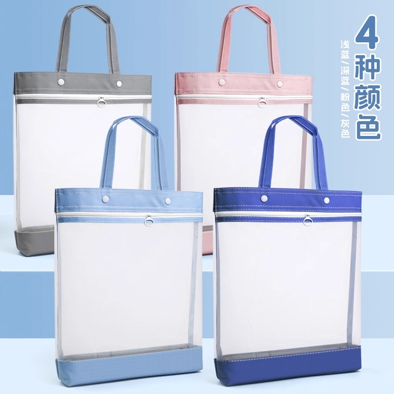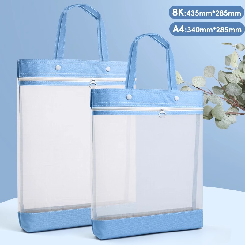 美术生专用透明网纱A4手提袋可装8K水粉纸素描纸水彩纸国画宣纸等美术用品颜料工具收纳大容量加厚手拎双层包