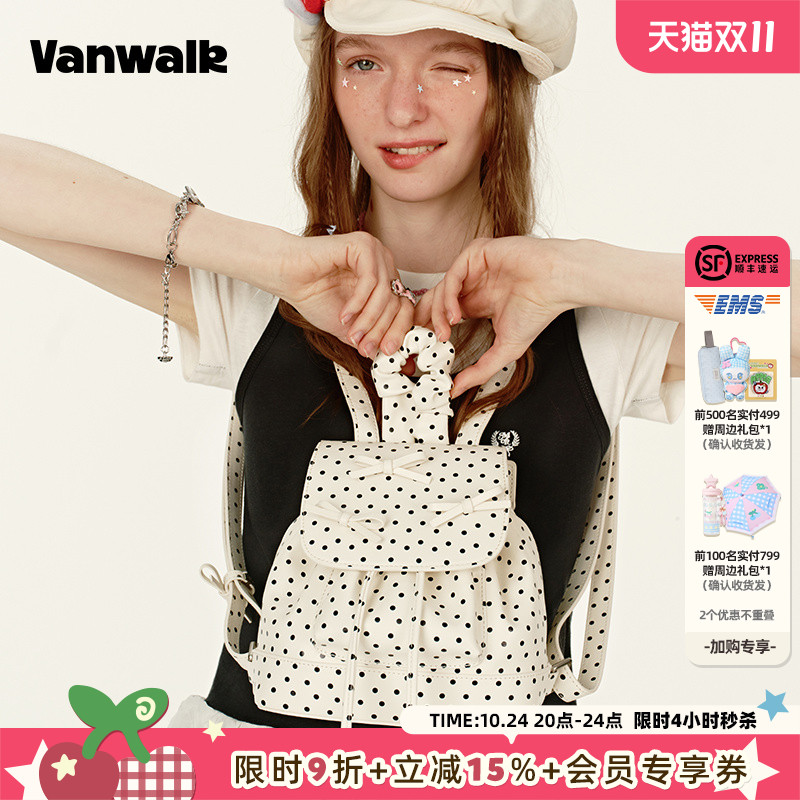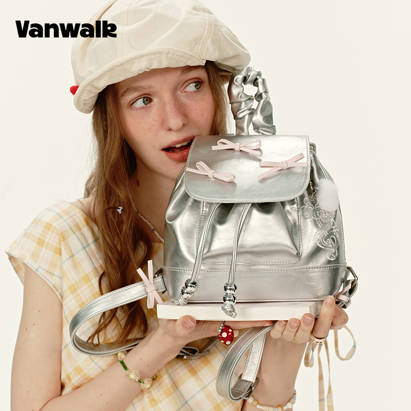 VANWALK手账系列 少女蝴蝶结芭蕾风小背包可爱出游双肩包小型包包