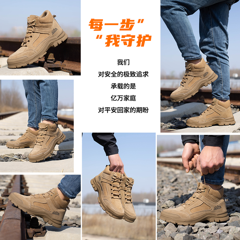 劳保鞋男防砸防刺穿翻毛皮耐高温电焊工作鞋高帮防滑钢头防烫耐磨