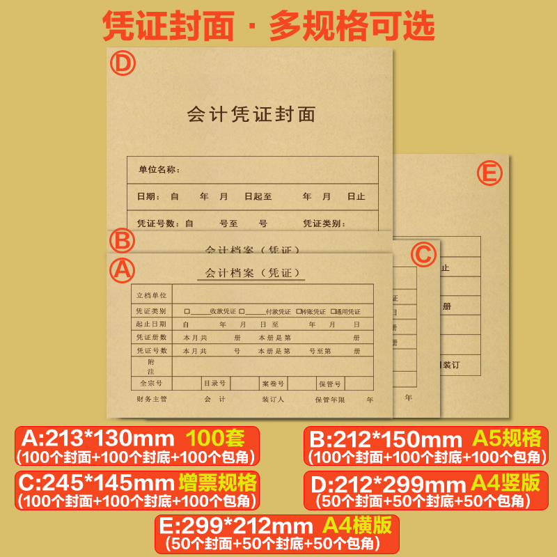 凭证封面增票规格会计记账凭证封皮财务a4牛皮纸封面送包角可定做