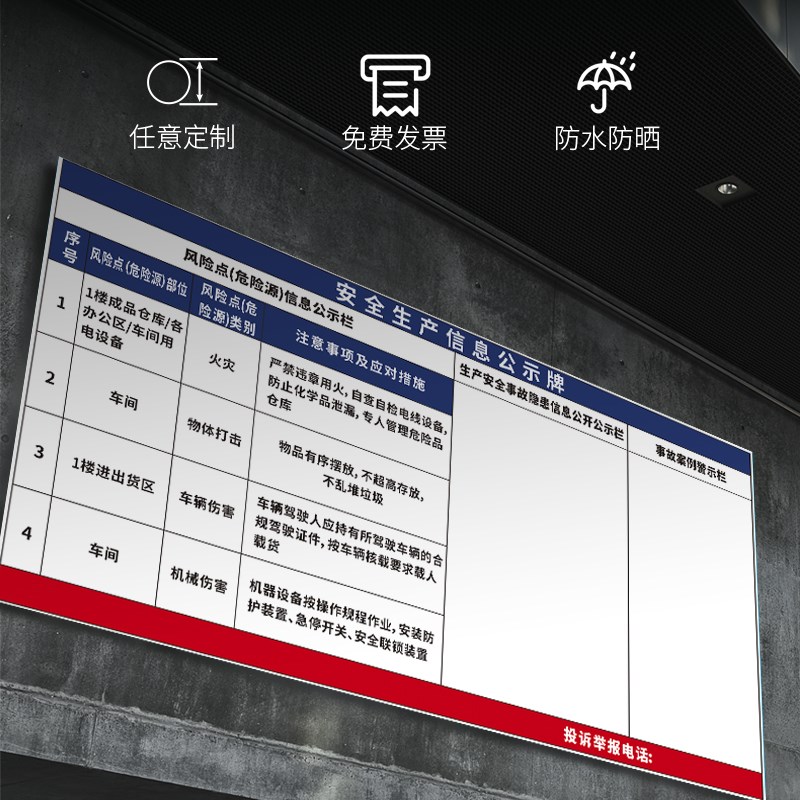 安全生产信息公示牌标识标志牌墙贴企业仓库车间办公区事故隐患信