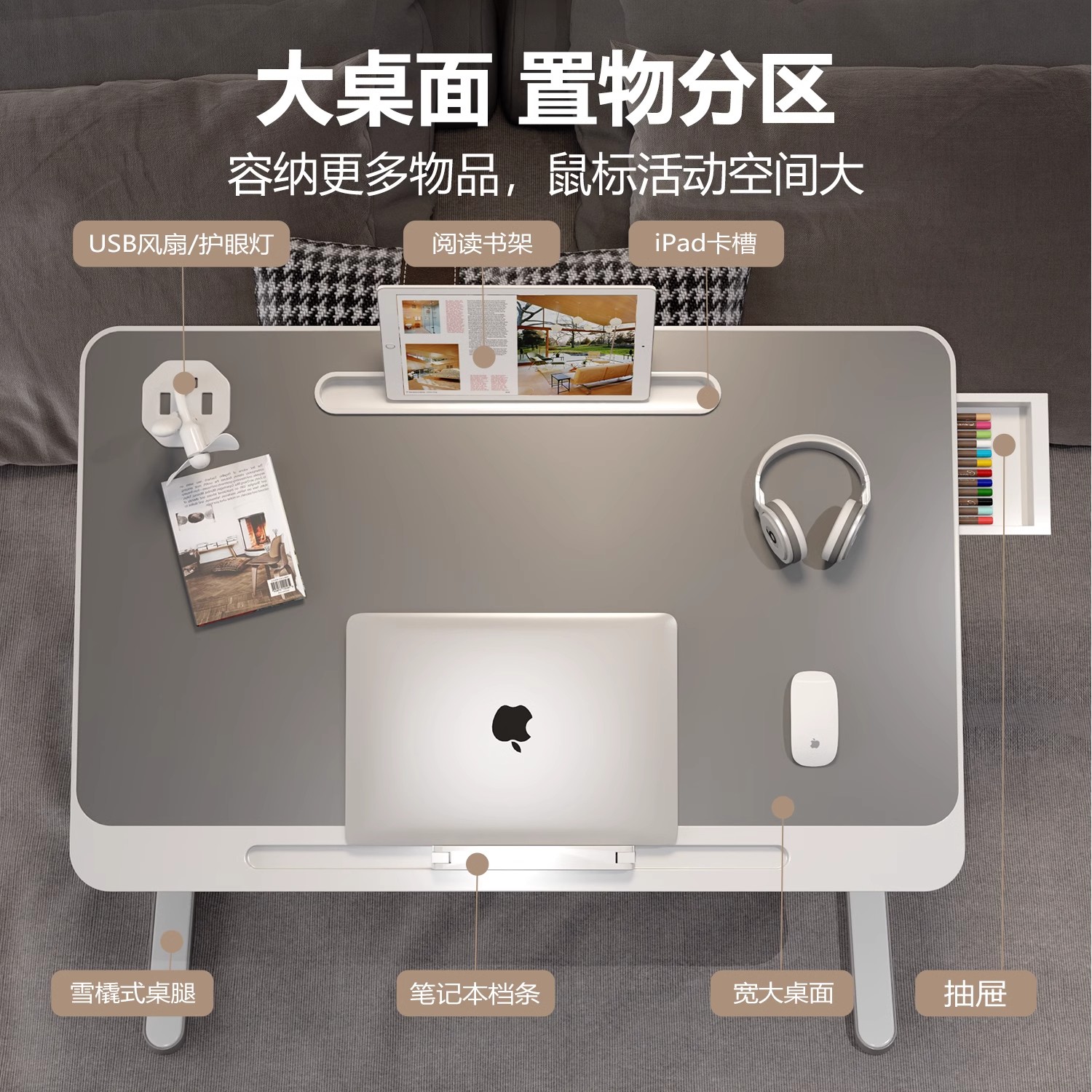 床上小桌子飘窗折叠桌学生床头宿舍书桌笔记本电脑支架办公桌懒人卧室坐地ins风学习可移动小桌板上铺桌加大