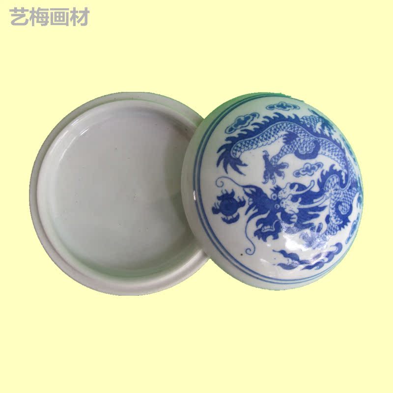 书画印泥盒青花瓷彩花手绘空白陶瓷盒印章书法国画印泥合用印台