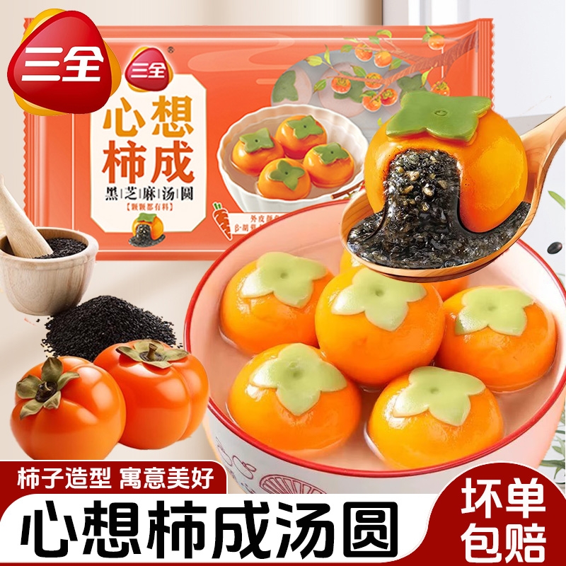 柿柿如意汤圆三全心想事成黑芝麻柿子元宵小圆子早餐半成品速冻