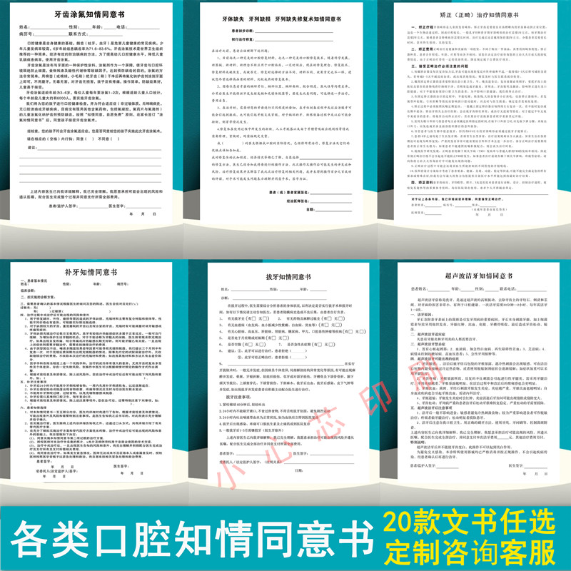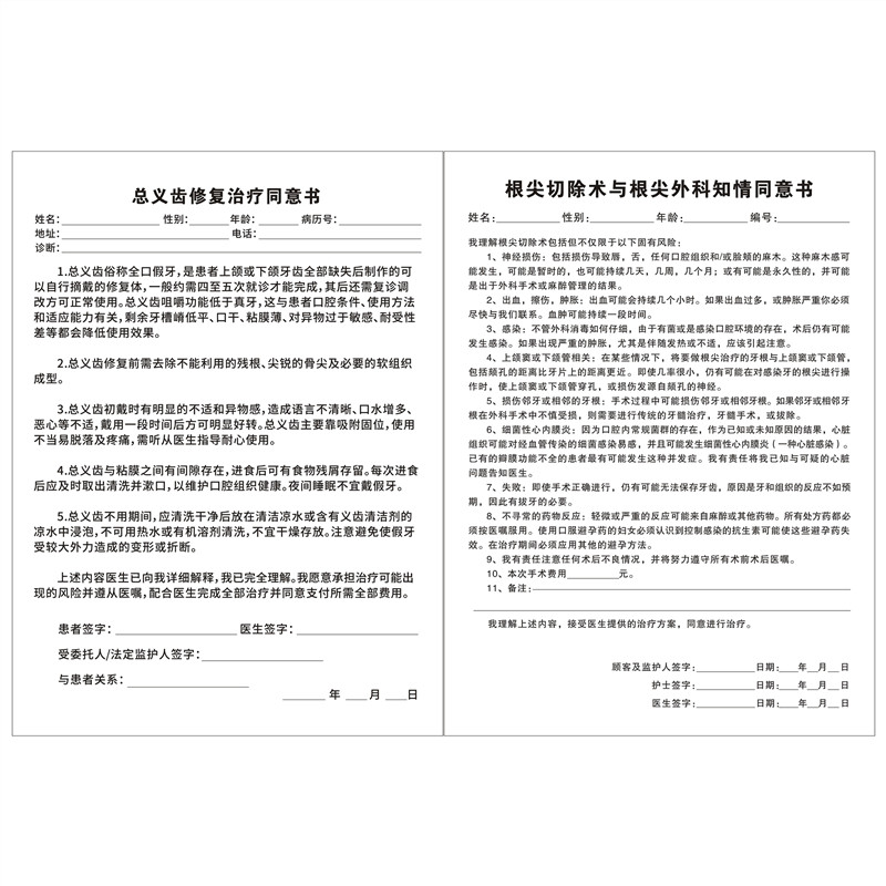 极速定制拔牙知情同m意书口腔科诊所手术须知种植根管正畸注意事