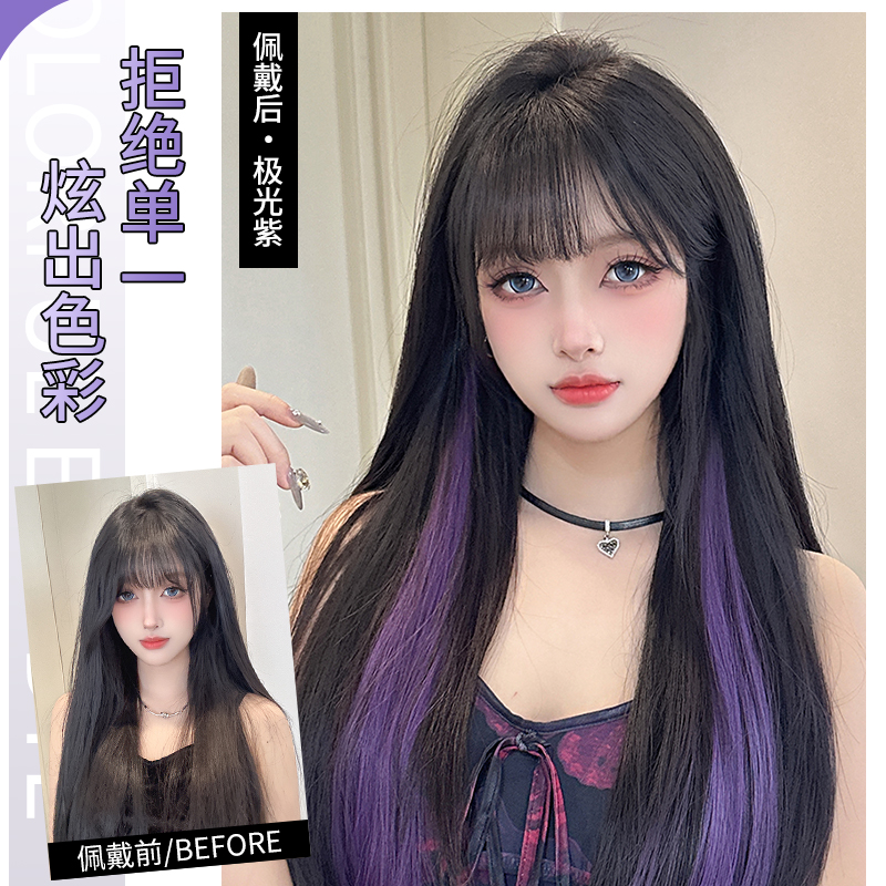 紫色挑染假发片女彩色挂耳染一片式轻薄无痕羽毛接发条超薄隐形